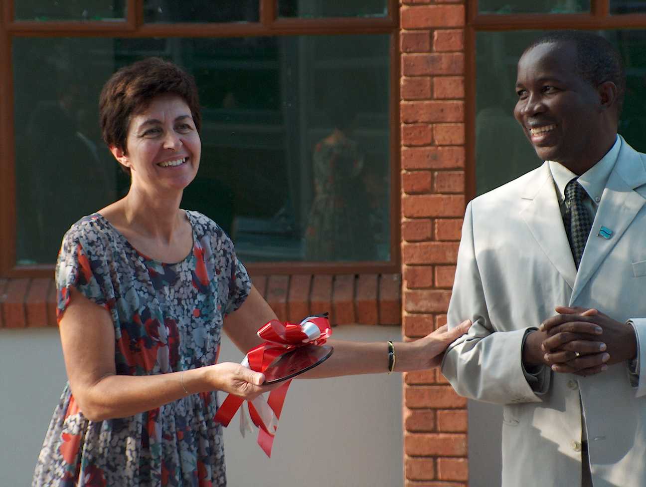 Quelques semaines plus tard, le Directeur-général adjoint de l’OIE, Dre. Monique Eloit a menée la cérémonie officielle de remise des clefs des nouveaux lieux. En effet, le 10 novembre 2009 le Directeur-général adjoint a reçu les clefs des nouveaux bureaux des mains du représentant du Ministre de l’Agriculture du Botswana, Dr. Moetapele Letshwenyo, en présence des représentants des deux organismes d’associé à l’OIE au sein du Centre Régional de Santé Animale pour l’Afrique Australe (CRSA-AA) : la FAO (ECTAD) et l’UA (IBAR). Le premier était représenté par le vétérinaire en chef (CVO) de la FAO, Dr. Juan Lubroth et le dernier par le Directeur de l’UA-IBAR, Dr. Ahmed El-Sawalhy. Dans son discours d’acceptation, Dre Monique Eloit a remercié le Gouvernement du Botswana pour l’offre généreuse d’accueillir la Représentation de l’OIE et ses partenaires entre ses murs et a exprimé le souhait que la proximité physique du Ministère et de la Représentation mènerait à une coopération amplifiée et à des efforts synergiques au profit de la santé et le bien-être animal au Botswana et en Afrique australe.