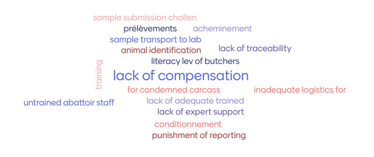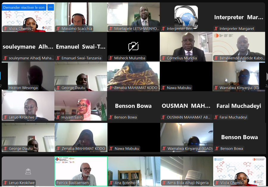 Les agences techniques, les laboratoires de référence, les CER et les pays (Membres) ont été invités à partager leurs points de vue sur les approches de surveillance susmentionnées, leurs succès et leurs défis. Des experts invités du Nigeria (Dr. Bida), de la Tanzanie (Dr. Swai) et de la Zambie (Dr. Mulumba) ont apporté un éclairage supplémentaire sur les approches d’épidémiologie participative, la surveillance au niveau des abattoirs et les normes générales de surveillance de l’OMSA, respectivement.