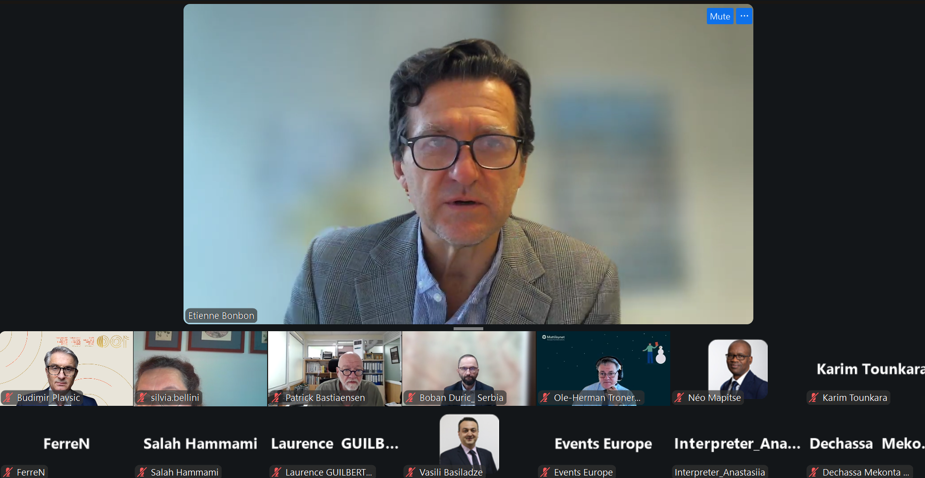 Screen capture of the webinar with Dr. Etienne Bonbon speaking.