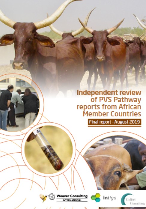 En 2019, l’OMSA a commandité une étude exhaustive et indépendante des rapports du processus PVS des pays-membres africains. Au moment de l’étude, 53 des 54 pays d’Afrique s’étaient engagés dans le processus PVS avec une évaluation PVS initiale. Tous les rapports n’ayant pas été mis à disposition en raison d’accords de confidentialité, cette étude a permis d’évaluer 46 rapports d’évaluation PVS, 47 rapports d’analyse des écarts PVS, 18 rapports d’évaluation-de-suivi PVS, 25 rapports du Programme d’appui à la législation vétérinaire (PALV) et 6 rapports de laboratoire PVS, tous issus de missions effectuées entre décembre 2006 et février 2019. Ce rapport (en Anglais), ainsi que les rapports du processus PVS, accessibles aux partenaires techniques et aux donateurs à travers la Banque de données OIE PVS, protégée par un mot de passe, constitue la base de référence de cette action.