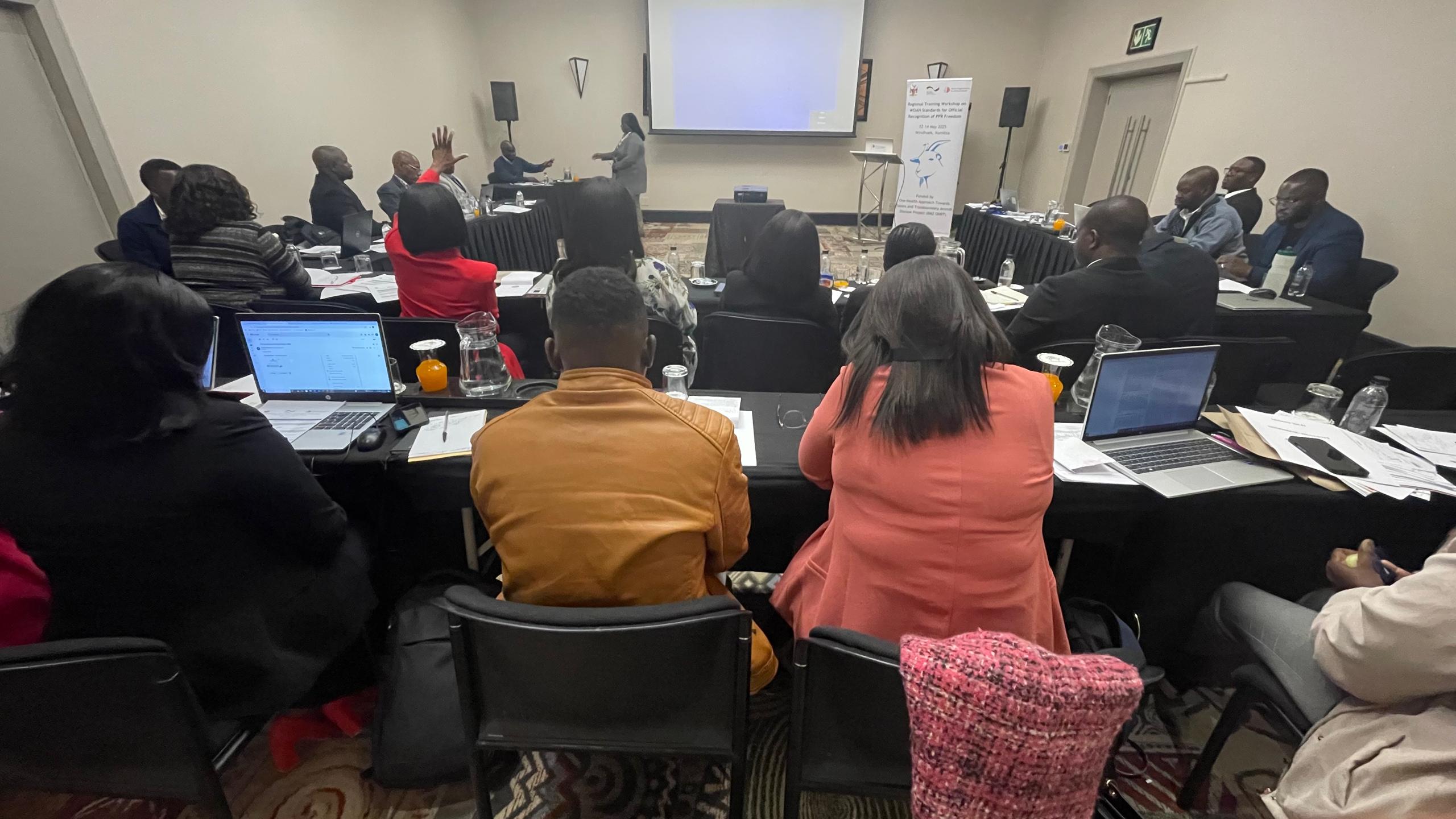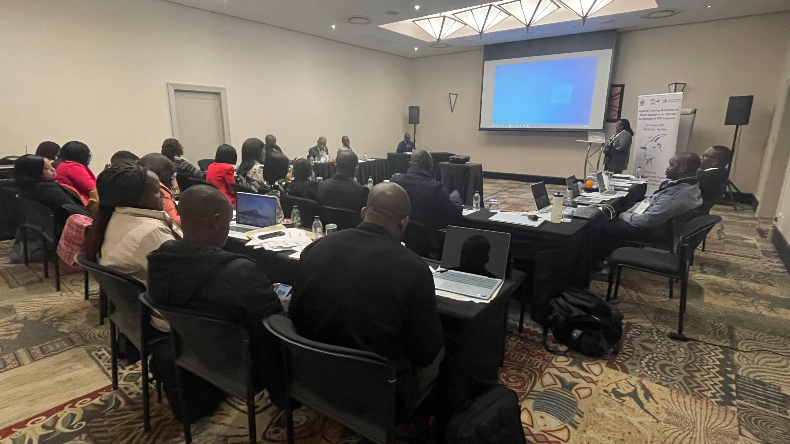 Un atelier de formation de trois jours sur les normes de l’OMSA pour la reconnaissance officielle du statut de pays indemne de la PPR a été organisé avec succès à Windhoek, en Namibie, du 12 au 14 mai 2025. Au total, 23 participants de la Direction des services vétérinaires (DSV) de la Namibie et un point de contact PPR de chacun des Service vétérinaires de l’Angola, du Malawi, du Mozambique et de la Zambie ont assisté à la formation.