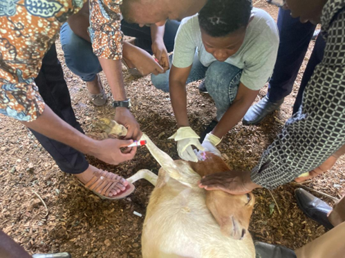 Lors des différentes activités de diagnostic réalisées dans le cadre du Projet P3V, il a été noté une mise en œuvre limitée des enseignements cliniques et pratiques dans les établissements partenaires. Pourtant de l’avis des différentes parties prenantes, la formation clinique et pratique doit constituer un point essentiel de la formation des paraprofessionnels vétérinaires (PPV). Ainsi un besoin de renforcement de la formation clinique et pratique a été exprimé par les établissements de formation. La réponse à ce besoin s’est dans un premier temps matérialisée par l’intégration, dans les curricula de formation des PPV développés et adopté en 2022, d’enseignements en lien avec la formation clinique et pratique. Par la suite, le Projet P3V a appuyé chacun des établissements de formation en matériel vétérinaire et de laboratoire. Ce matériel était constitué de matériel d’aide à l’examen clinique et à la thérapeutique (thermomètres, stéthoscopes, seringues automatiques pour ruminants et la volaille, etc.), du matériel de prélèvements d’animaux (aiguilles, portes tubes, tubes de prélèvements de sang et de fèces, écouvillons, etc.), du matériel de gestion de la biosécurité (gants, poubelles, désinfectants, etc.), et du matériel d’analyse microbiologiques et parasitologiques (tubes à essai, microscopes photoniques, lames et lamelles, kits de coloration, etc.). Ce matériel a été réceptionné dans les établissements et une salle a été identifiée pour la disposition du matériel et l’exécution des activités de formation clinique et pratique.
