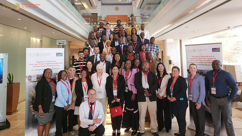 L’Organisation mondiale de la santé animale (OMSA) a organisé une formation sur la communication des risques et des crises dans les situations d’urgence en santé animale du 21 au 17 avril à Windhoek, en Namibie. Cet atelier s’inscrivait dans le cadre du projet FIRABioT (Fortifying Institutional Resilience against Biological Threats), soutenu par le Programme de réduction de la menace des armes (Weapons Threat Reduction Program) des Affaires mondiales Canada (Global Affairs Canada).