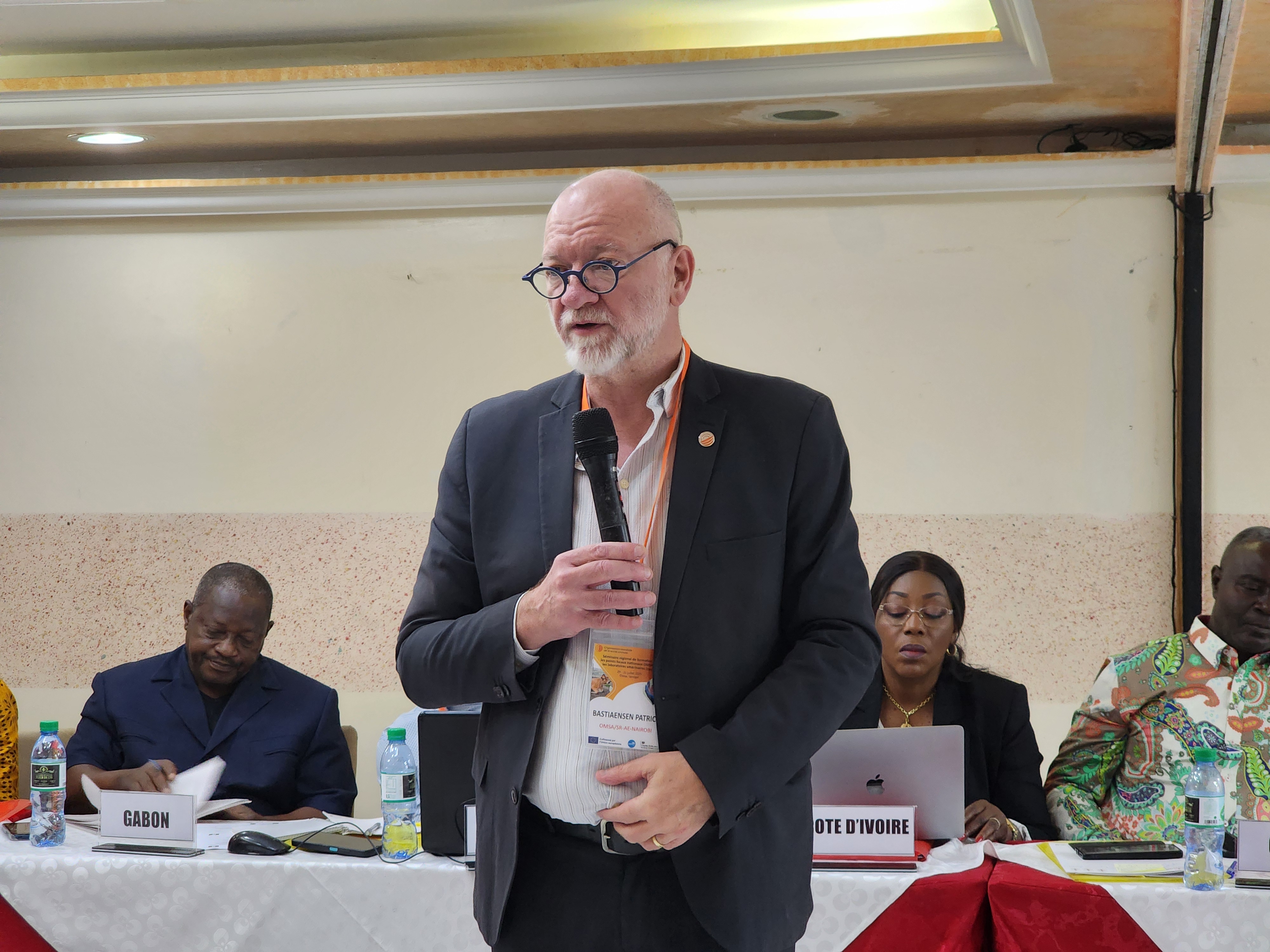Prof. Emmanuel Couacy-Hymann, the President of WOAH's Biological Standards Commission, speaking during the training. Picture © P. Bastiaensen (woah) 2025