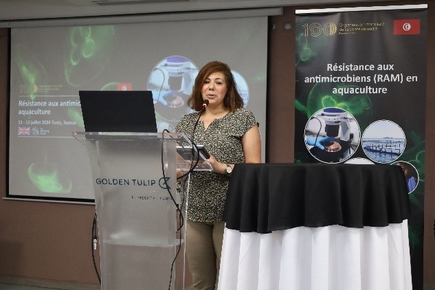 Dr Hajer Kilani giving the opening remarks on behalf of Dr Sana Kacem (Tunisia Delegate).