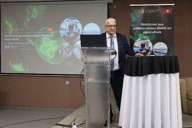Dr Rachid Bouguedour (Representative of the WOAH North Africa region) delivering the opening remarks