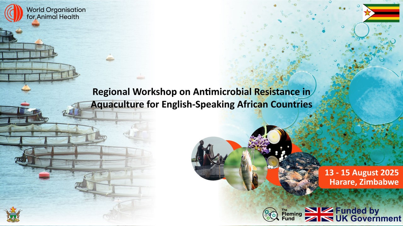 L’Organisation mondiale de la santé animale (OMSA), avec le soutien du Fonds Fleming par le biais de l’Aide Britannique, a organisé sa quatrième série de formations progressives sur la résistance aux antimicrobiens (RAM) dans l’aquaculture. Organisé à Harare, au Zimbabwe, l’atelier a réuni les points focaux nationaux sur la RAM, ainsi que les vétérinaires spécialisés dans la pêche, des pays africains anglophones.