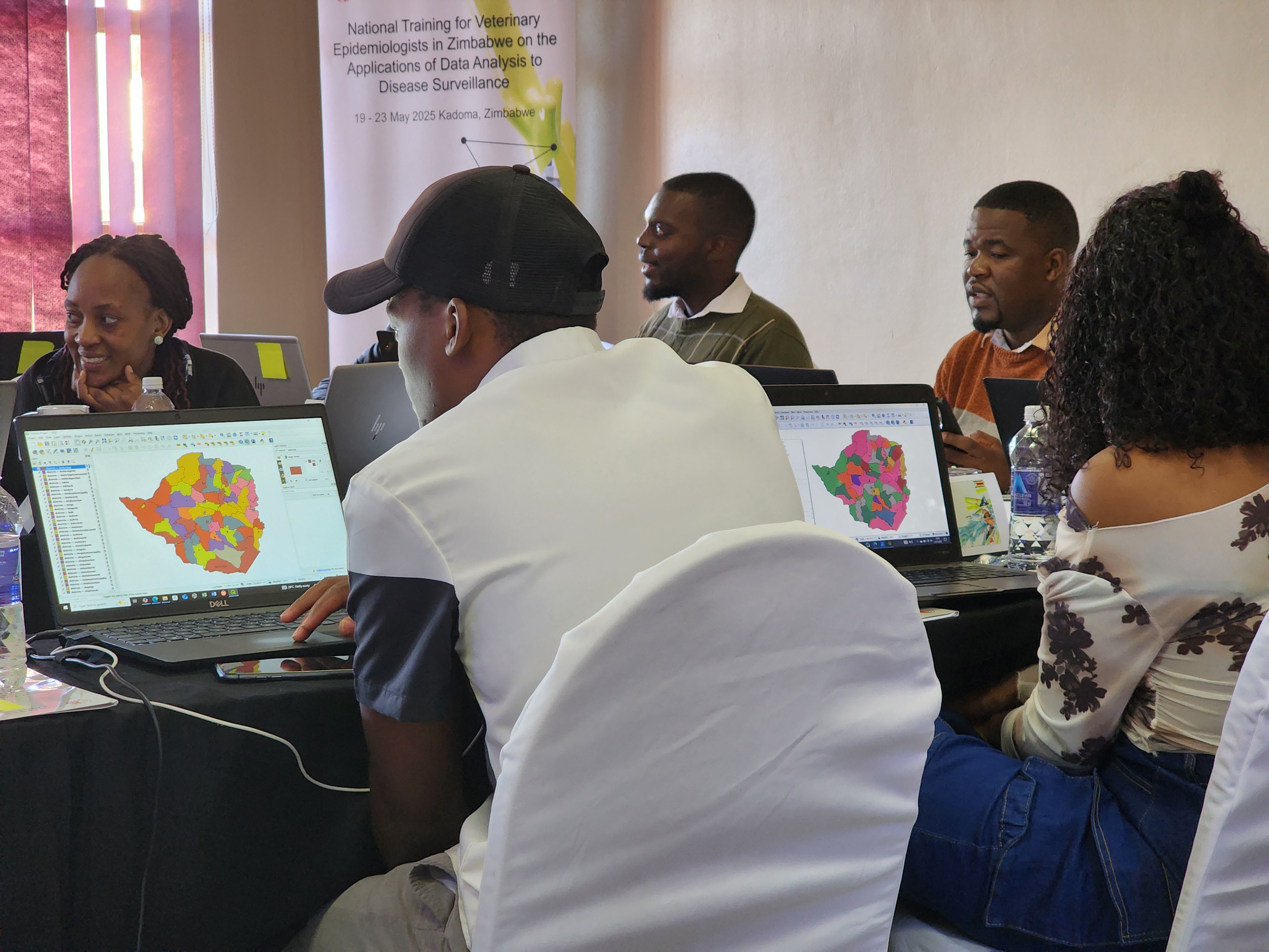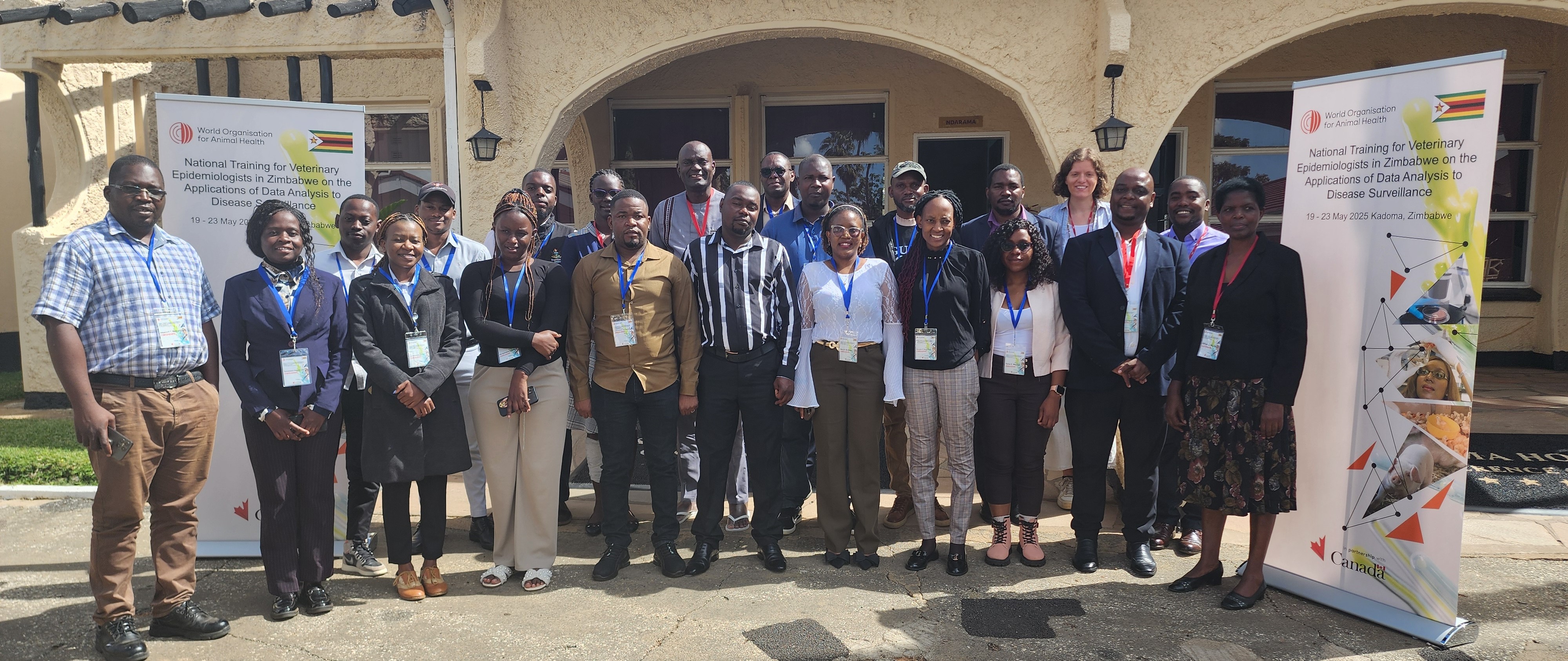 À la suite de cette formation, et conformément à ses priorités nationales, le Zimbabwe a sollicité un appui pour organiser une formation nationale sur l’analyse des données appliquée à la surveillance des maladies, à l’intention des épidémiologistes vétérinaires aux niveaux national et provincial. Cette formation, qui s’est tenue du 19 au 23 mai 2025 à Kadoma, a réuni 16 épidémiologistes vétérinaires afin de renforcer leurs capacités en gestion et analyse des données de surveillance, en évaluation des risques et en élaboration de plans efficaces de surveillance des maladies. L’objectif était de renforcer la capacité du Zimbabwe à prévenir, détecter et répondre aux urgences sanitaires animal, y compris les actes de biocriminalité et de bioterrorisme.