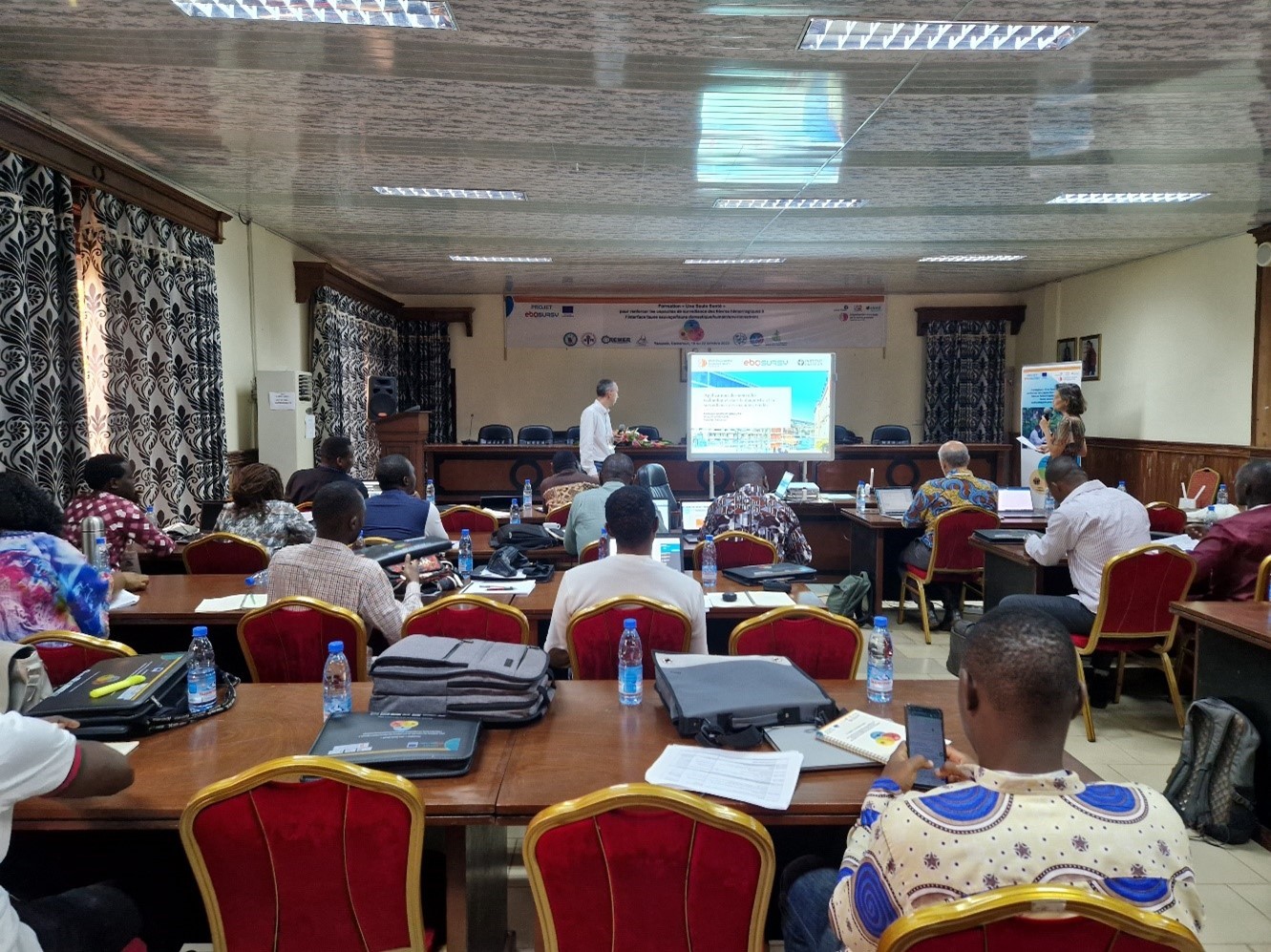 Cette formation a été organisée par le Consortium du projet EBO-SURSY, c-à-d. l’IRD, l’Institut Pasteur, le CIRAD, l’OMSA et leurs partenaires nationaux : le Centre de Recherche des Maladies Emergentes et Réémergentes (CREMER), le Centre Pasteur du Cameroun et la Direction des Services Vétérinaires du Cameroun, avec le soutien financier de l’Union Européenne.