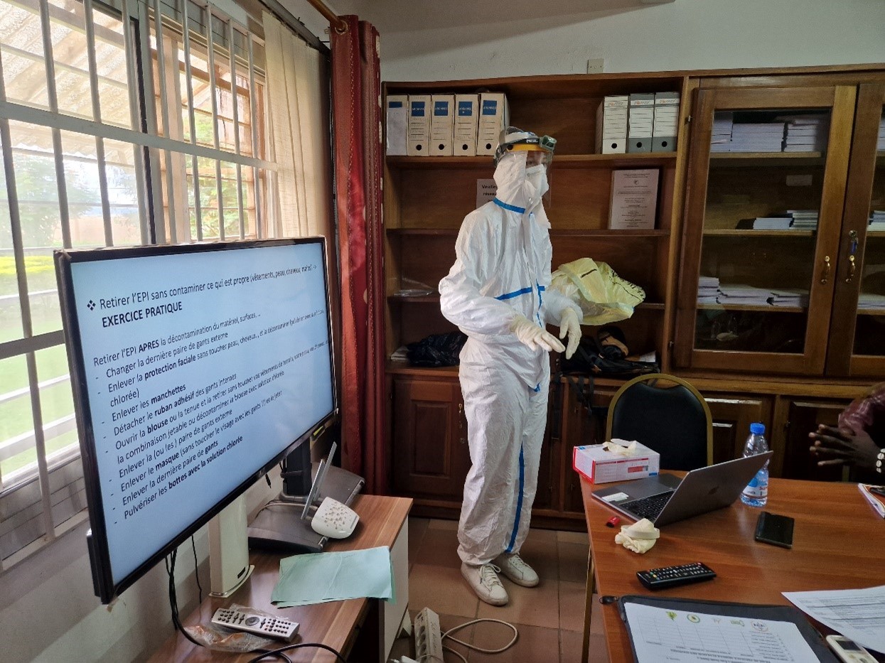 Après une première édition organisée en Guinée en 2019, une seconde formation pour renforcer les capacités de surveillance des fièvres hémorragiques à l’interface faune sauvage / animal domestique / homme / environnement - en appliquant l’approche Une Seule Santé – a eu lieu à Yaoundé, au Cameroun, du 10 au 22 octobre 2022 dans le cadre du projet EBO-SURSY.