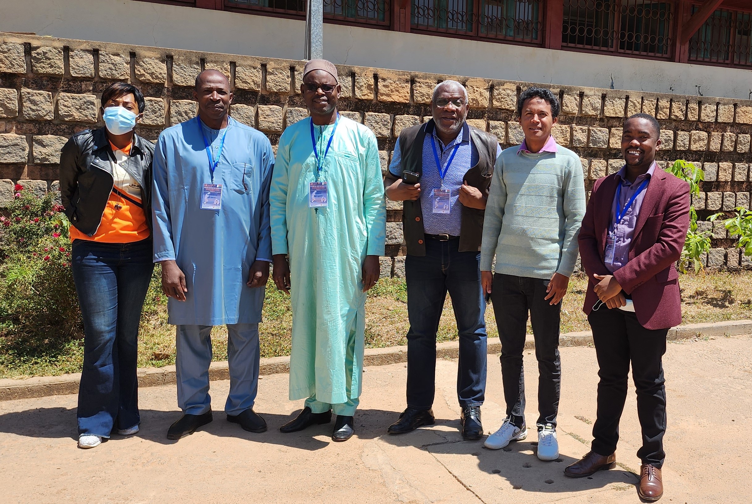Photo de groupe, de gauche à droite : Mme Carine Kadès, Pr. Boubacar Sidiki Ibrahim Dramé, Pr. Djibril Sangaré, Pr. Emmanuel Couacy-Hymann, Dr. Toky Ramilijohn et M. Ian Peter Busuulwa. Photo © I. Busuulwa (omsa) 2023