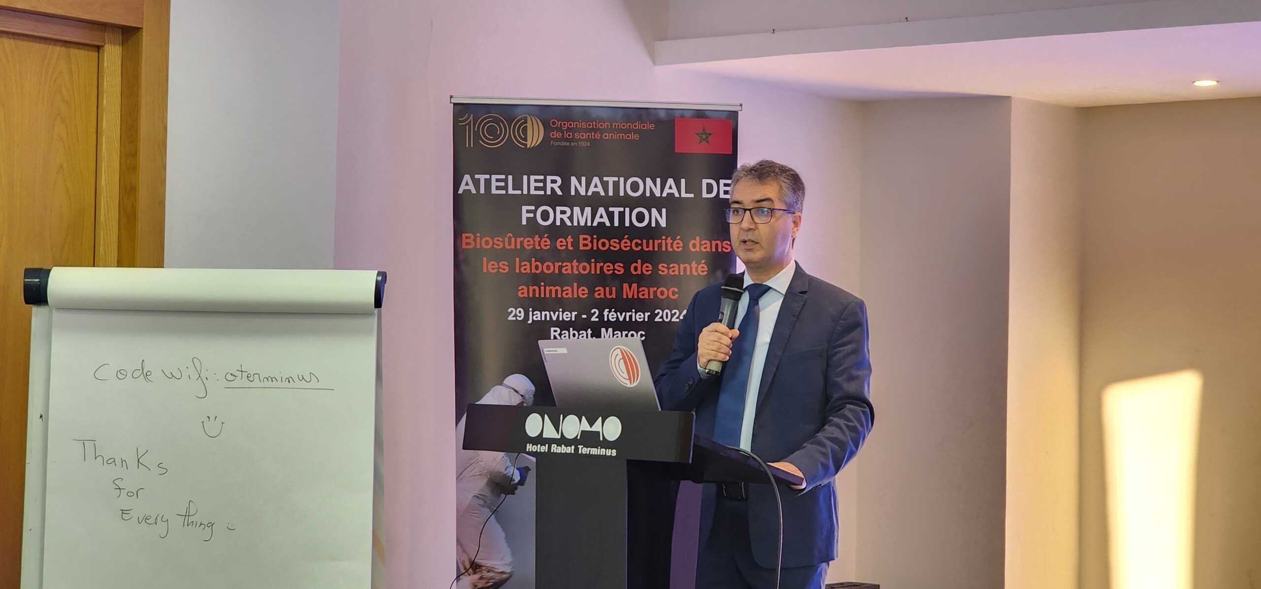 Célébrant 100 ans d’engagement indéfectible en faveur de la santé animale mondiale, OMSA a récemment organisé une formation sur la biosûreté et la biosécurité dans les laboratoires de santé animale, pour les Services vétérinaires du Maroc. La formation, organisée à Rabat du 29 janvier au 2 février 2024, visait à doter le personnel de laboratoire des connaissances, compétences et aptitudes nécessaires à l’évaluation et à la gestion efficaces des risques biologiques.