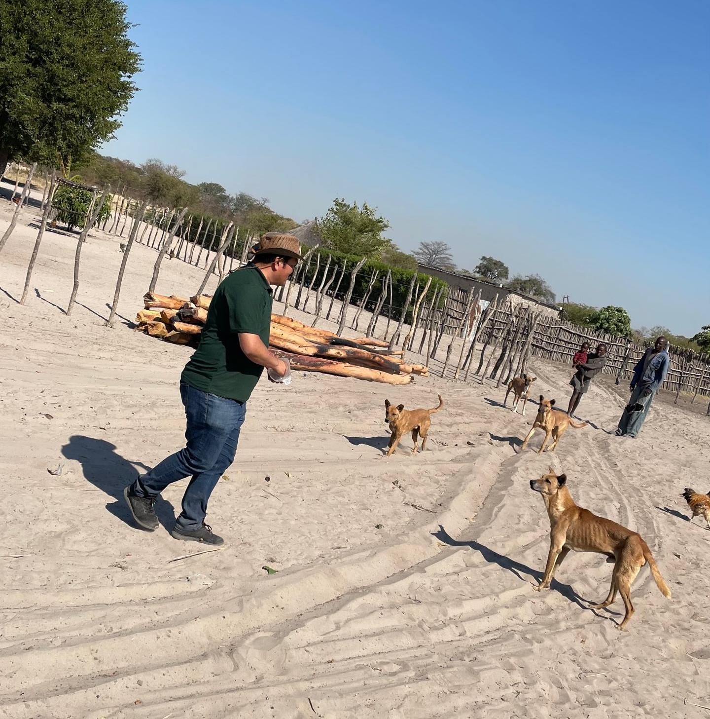 The car passing through the Veterinary Control gate (Veterinary Check point) is being inspected by the watchmen (veterinary inspectors) for any infectious materials and meat. Picture (c) Haimbodi (DVS Namibia) 2024.