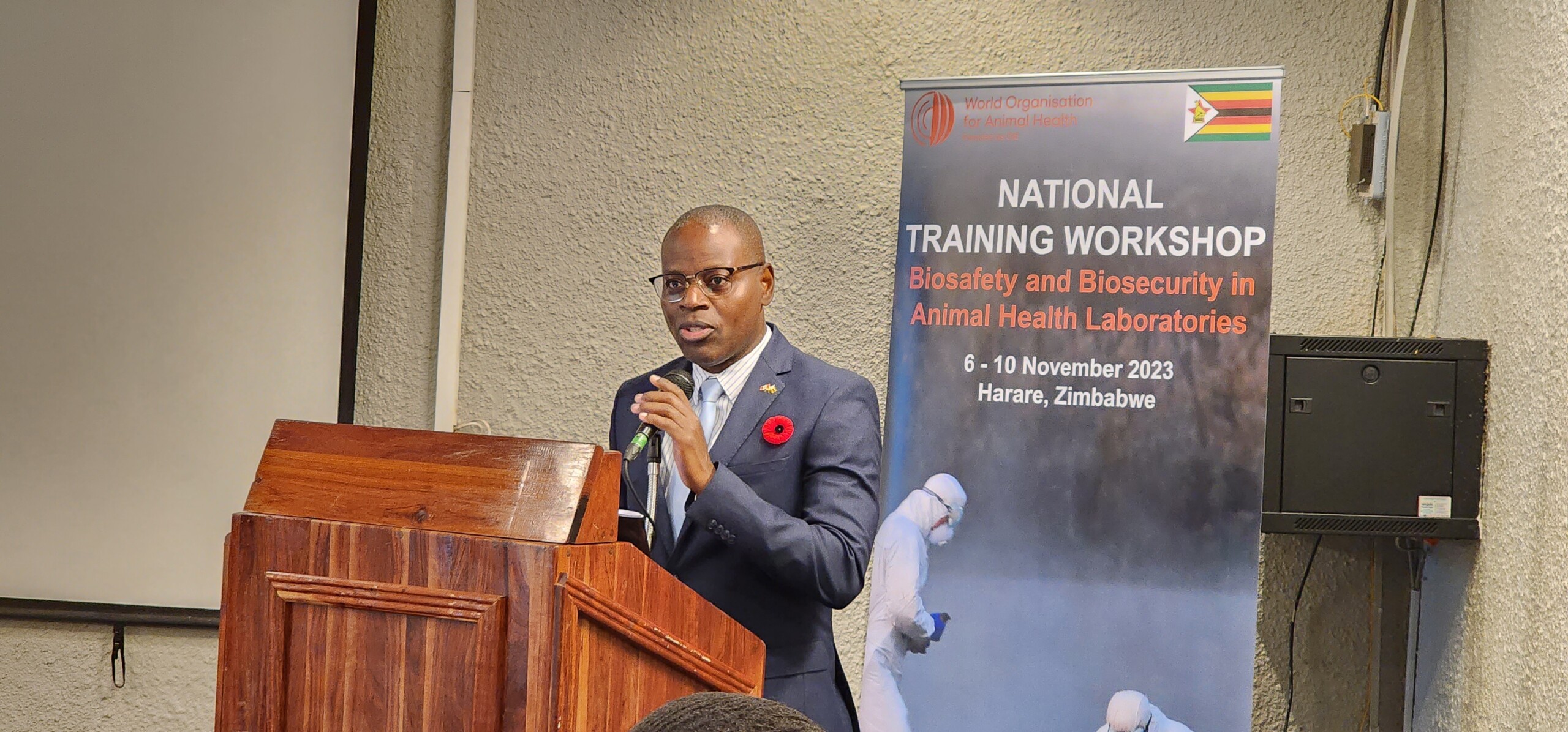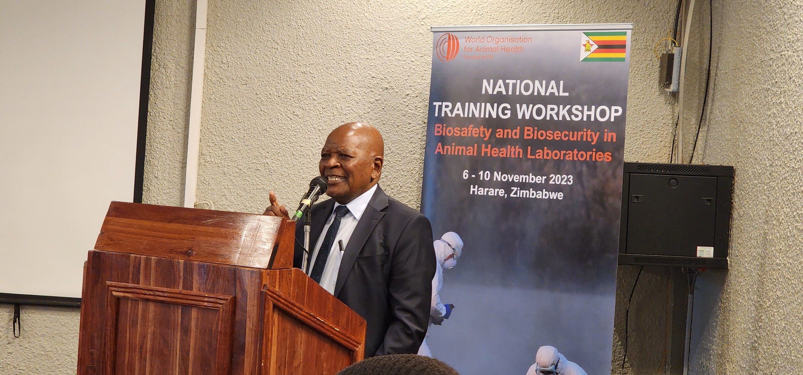 Les services vétérinaires du Zimbabwe ont récemment reçu une formation précieuse dans le cadre d’un atelier organisé par l’Organisation Mondiale de la Santé Animale (OMSA) sur la biosécurité et la biosûreté dans les laboratoires de santé animale. L’atelier, qui s’est déroulé du 6 au 10 novembre 2023 à Harare, visait à fournir au personnel technique des laboratoires vétérinaires centraux et provinciaux du Zimbabwe les connaissances et les compétences nécessaires pour établir et mettre en œuvre un système de gestion des risques biologiques.