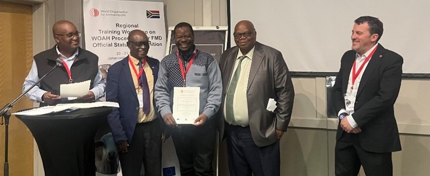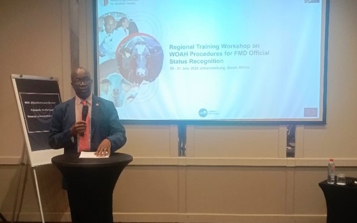 L’Organisation mondiale de la santé animale (OMSA), par l’intermédiaire de sa Représentation sous-régionale pour l’Afrique australe et avec le soutien technique du Service des Statuts de l’OMSA, a organisé avec succès un atelier régional de formation sur les procédures de l’OMSA pour la reconnaissance officielle du statut et l’approbation des programmes de lutte contre la fièvre aphteuse. Cet événement s’est tenu à Johannesburg, en Afrique du Sud, grâce au généreux financement de l’Union Européenne dans le cadre du Projet SPS en faveur de l’UA (AfCFTA) et de la COMESA.